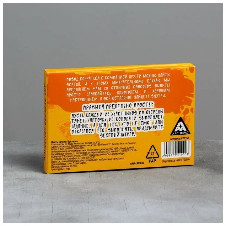 Купить игра для компании "фанты буханты" 20 карт от 100 руб. с доставкой до пункта выдачи в Дубне. Интернет магазин ДекаМаркет. Оплата при получении.